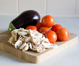 Skær champignoner og auberginer i henholdsvis skiver og store tern. Og start med at stege champignonerne til de begynder at afgive lidt væde tilsæt auberginerne og lad dem stege til de begynder at tage lidt farve, imens skæres tomaterne i både, og puttes på panden (tomaterne må gerne være lidt modne). Når det helte har simret lidt og tomaterne så småt er ved at gå i opløsning og få det hele til at minde lidt mere om en sovs, så tilsættes tomatpesto eller tomat/chilipasta – En rød pesto fra supermarkedet kan også sagtens bruges. Smag til med salt og peber. Og så er der serveret.
